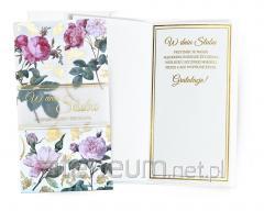 Karnet Dedykowany od Babci i Dziadka. Luksusowy karnet Ślubny z elementami złocenia lub srebrzenia, wykonany na specjalnym, grubym kartonie z licznymi dodatkami.