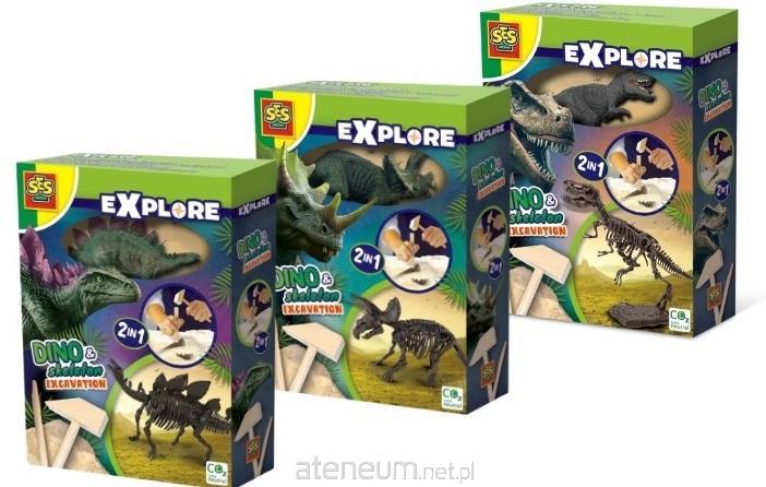 Obudź w sobie archeologa dzięki zestawowi do wykopalisk dinozaurów 2 w 1. Wykop szkielet dinozaura za pomocą młotka i dłuta, wykopując kości dinozaura z bloku odpryskującego, a następnie złóż szkielet w całość. W zestawie znajduje się także figurka dinozaura. Zawartość: Figurka dinozaura, klocek do odpryskiwania ze szkieletem dinozaura, drewniany młotek, drewniane dłuto, instrukcja.
