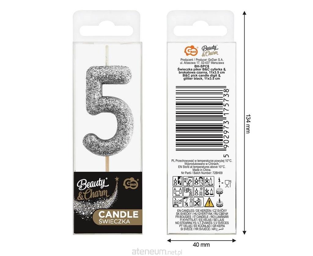 Świeczka B&C 7 metalik srebrna 8,0cm
