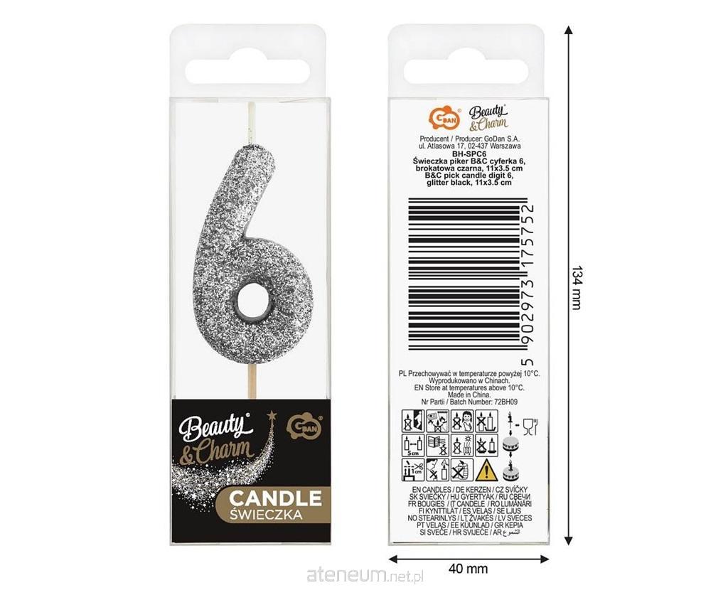 Świeczka piker B&C cyfra 6 metaliczna złota 9,5cm