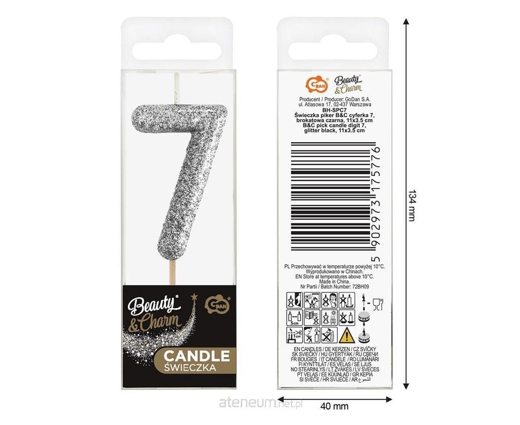 Świeczka piker 5 czarna brokatowa 11x3.5 cm