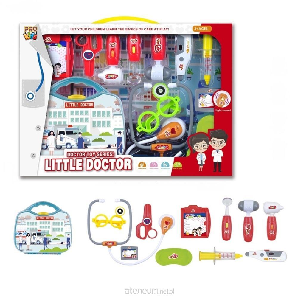 Walizka ma przeźroczyste zamykanie, dlatego dziecko widzi, jakie narzędzia ma ze sobą. Setoskop jest na baterie z funkcją swiatła i dźwięku. Po przyłożeniu stetoskopu rozlega się bicie serca i zapala się czerwona dioda. Termometr pozwala wybrać temperaturę 37, 38 lub 39 stopni.