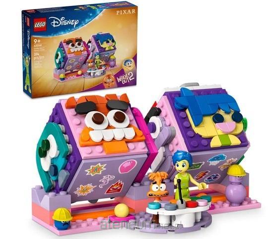 Zabawki z emocjami do zbudowania - ten kreatywny zestaw zawiera dwie kostki z emocjami, dziewięć wymiennych płytek z nastrojami, podstawkę do ekspozycji oraz minilaleczki Radości i Niepokoju LEGO® Disney Pixar