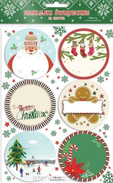 Zestaw naklejek na prezenty Mikołaj na dachu