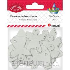 Drewniane dzwoneczki jako artykuł dekoracyjny idealnie nadają się do decoupage, scrapbookingu czy jako dekoracja opakowań prezentowych, pudełek, kartek świątecznych itp. Charakteryzuje je wysoki poziom wykonania dzięki laserowej obróbce materiału. Produkt jest bezpieczny dla ludzi oraz środowiska i w pełni ekologiczny. Średnica pojedynczego elementu ok 23mm. Zapakowane w woreczek z eurowieszakiem, który zawiera 24szt aniołków