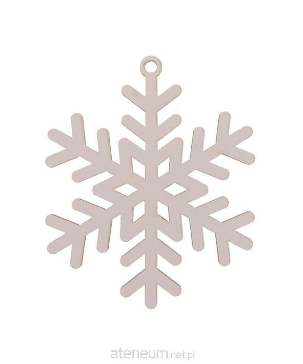 Drewniana śnieżynka w kształcie płatku śniegu biała. Średnica 8cm, wysokość całkowita 9cm. W opakowaniu 3szt