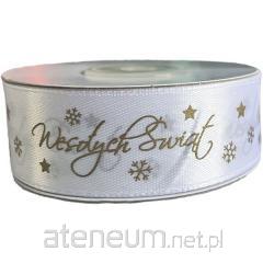 Wstążka satynowa Wesołych Świąt 25mm biała