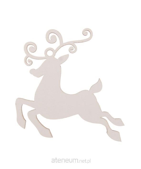 Drewniana bombka zawieszka na choinkę w kształcie renifera biała. Szerokość 8,5cm, wysokość 8cm. W opakowaniu 3szt.