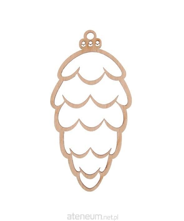 Drewniana bombka w kształcie szyszki naturalna. Wysokość całkowita 9cm, szerokość 4,5cm. W opakowaniu 3szt