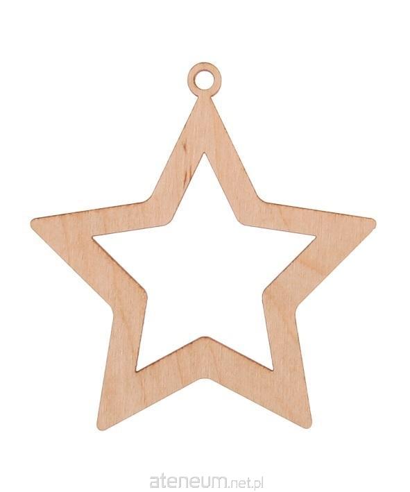 Drewniana bombka w kształcie gwiazdy naturalna. Średnica 8cm, wysokość całkowita 9cm. W opakowaniu 3szt