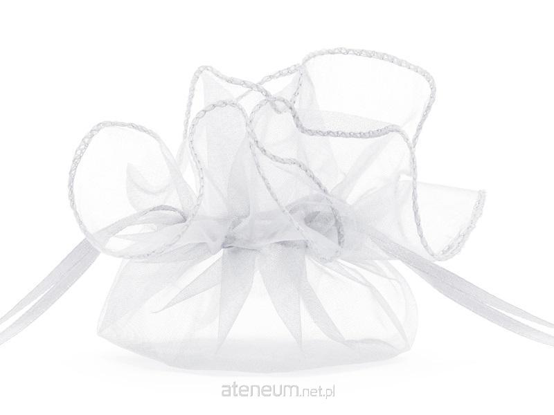 Ściągane woreczki z gładkiej organzy w kolorze białym, średnica ok. 25 cm. Idealne dla gości weselnych.(1 op. / 10 szt.)