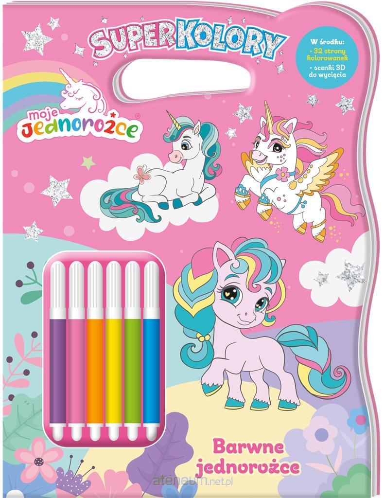 Książka SUPERKOLORY to atrakcyjne kolorowanki z rysunkami ulubionych bohaterów. Do każdej z publikacji dołączone są piękne flamastry. Wystarczy, że dziecko pomaluje obrazek, a rysunki z postaciami ulubieńców nabiorą kolorów. Świetna zabawa gwarantowana!