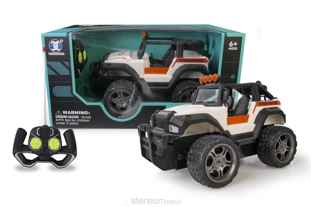 W zestawie: auto, kontroler, akumulator, ładowarka, Funkcje: pełny zakres jazdy, światła przednie, efekty dźwiękowe, ustawienie zbieżności kół, terenowe opony, Pozostałe informacje: dł. auta 23 cm, wym. opak. 33,5 x 17,5 x 19 cm, baterie: akumulator 3.7v (auto) dołączony, 2 x aa (kontroler) niedołączone, 6+