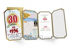 Nowy karnet JCX w formie bankomatu, to wyjątkowy pomysł na sprawienie obdarowanemu nim wesołej i niebanalnej niespodzianki. Wykonany z wysokiej jakości grubego papieru o gramaturze 350g i uszlachetniony złoceniem. Wewnątrz karnetu znajdują się wesołe życzenia, oraz wkładka w formie banknotu, na którym widnieją zabawne i oryginalne teksty, które zaskoczą każdego jubilata i z pewnością wywołają uśmiech na jego twarzy. Karnet może być idealnym dodatkiem do każdego prezentu.