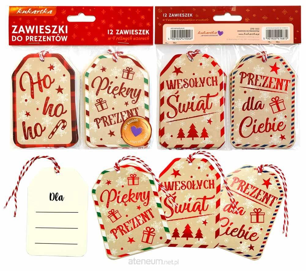Zawieszki do prezentu ZPR-002. Zestaw zawiera 12 zawieszek w 4 różnych wzorach. Zawieszki do prezentu ze sznurkiem to doskonały sposób na dodanie osobistego akcentu do Twoich podarunków. Każda zawieszka jest uszlachetniona metalizowaną folią hot-stamp oraz wyposażona w sznurek, co umożliwia łatwe przymocowanie do prezentu. Zawieszki doskonale nadają się do wpisania imienia obdarowywanej osoby lub krótkich życzeń czyniąc każdy podarunek wyjątkowym. Specyfikacja: Wymiary karnecika: 7,0 x 10,2 cm Wymiary opakowania: 16,2 x 0,5 x 15 cm (długość x szerokość x wysokość) zdobienia: metaliczna folia, sznurek wnętrze: miejsce w środku karnecika na wpisanie imienia obdarowanej osoby lub własnych życzeń okazja: BN