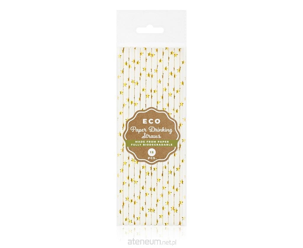 SŁOMKI PAPIEROWE BIAŁE W ZŁOTE GWIAZDKI