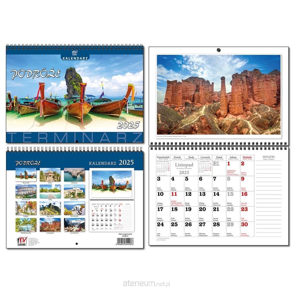 Kalendarz 2025 A4 terminarz 13 plansz Podróże