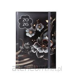 kalendarz formatu A5, układ dzienny, okładka z ekoskóry, papier chamois