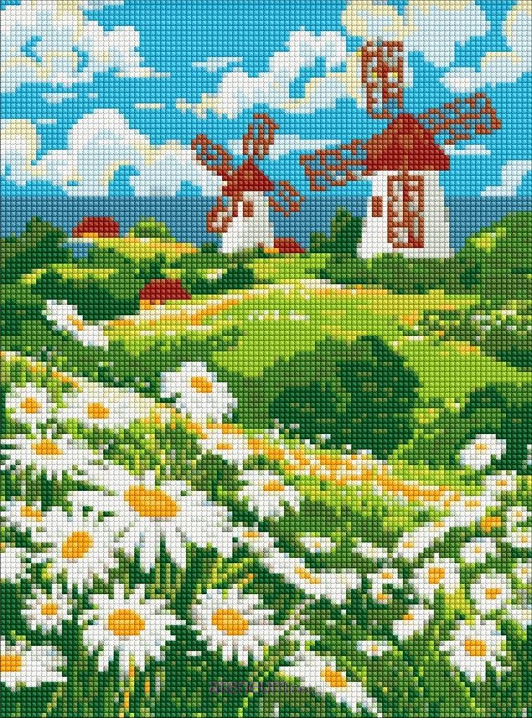 Diamentowa mozaika bez ramy - Pole stokrotek 30x40