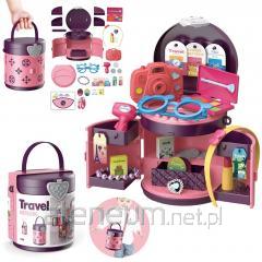 Zestaw Piękności z Akcesoriami Suszarka Prostownica Zestawy piękności to zabawki, które są nieustannym hitem wszystkich dziewczynek. Toaletki wypełnione przeróżnymi akcesoriami pozwalają małym strojnisiom naśladować starsze siostry, koleżanki i mamy. Zestawy te są również urozmaiceniem klasycznych zabaw - ułatwiają wcielenie się w rolę makijażystki czy pięknej modelki. Uważamy, że jest to świetny pomysł na prezent dla dziewczynek, które podbierają elementy z kosmetyczek przeznaczonych dla osób dorosłych, ponieważ imitacje wchodzące w skład zestawu są stworzone z myślą o dzieciach - nietoksyczne i bezpieczne. Suszarka do włosów posiada efekty dźwiękowe. Do uruchomienia suszarki potrzeba dwóch baterii "AAA" 1.5V. Natomiast prostownica posiada efekty świetlne, potrzeba także dwóch baterii "AAA" 1.5V. W skład zestawu wchodzi: - suszarka do włosów - dyfuzor do suszarki - prostownica - 2 pierścionki - lustereczko - grzebień - 2 spinki do włosów - mała, różowa szkatułka z lustereczkiem Wymiary wybranych elementów zestawu: - suszarka: 19 cm x 16 cm - prostownica: 17 cm x 4 cm Wymiary opakowania: 36 cm x 24 cm x 10.5 cm Zestaw piękności wyprodukowany jest zgodnie z normą EN 71, oznaczono go również certyfikatem CE. Wszystkie elementy wchodzące w skład zestawu zostały wykonane z dbałością o najmniejszy szczegół z najwyższej jakości tworzywa, co jest gwarancją zarówno bezpieczeństwa, jak i komfortu użytkowania. Zestaw przeznaczony jest dla wszystkich małych księżniczek powyżej 3. roku życia.