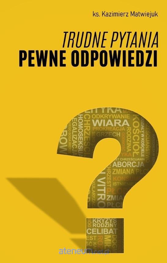 Trudne pytania - pewne odpowiedzi to swoiste vademecum współczesnego człowieka, które pozwoli mu odnaleźć się w skomplikowanym świecie. Przystępna forma, pogłębienie tematu, odwołanie do wielu autorytetów to tylko niektóre istotne atuty publikacji, która nie tylko pozwoli zgłębić trudne prawdy wiary, ale także znaleźć odpowiedź na nurtujące pytania człowieka XXI wieku. Może pomóc ożywić wiarę, rozwinąć swoje intelektualne perspektywy, zdobyć cenne argumenty do dyskusji w obronie stanowiska Kościoła. Niezależnie, czy sięgnie po nią starszy człowiek, który czuje, że nie nadąża za szybko biegnącym światem, czy przeczyta ją młody, który dopiero styka się z trudną i skomplikowaną rzeczywistością, będzie to bardzo owocna podróż duchowa i intelektualna.