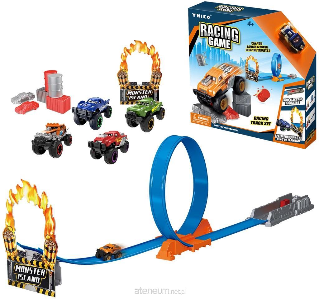 Tor dla aut z pętlą zakończony skocznią. W zestawie metalowe auto oraz akcesoria.