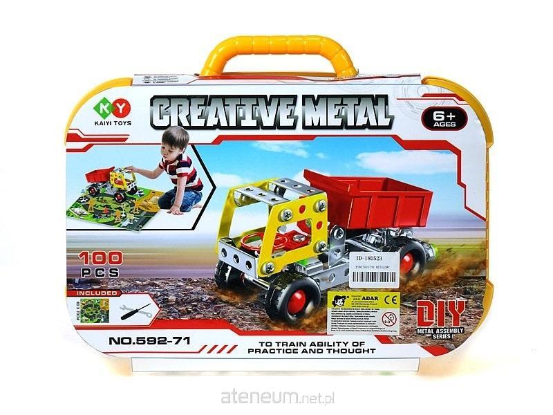 zestaw 100 metalowych klocków do skręcania, z matą z ulicą, w walizce; Box