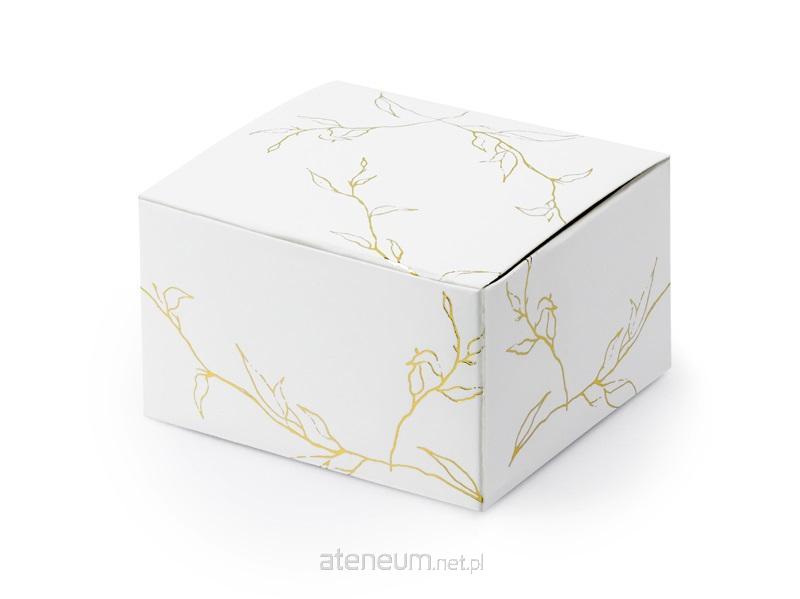 Pudełeczka w kolorze białym ze złotymi gałązkami, wymiary po złożeniu ok. 6 x 3,5 x 5,5 cm.(1 op. / 10 szt.)
