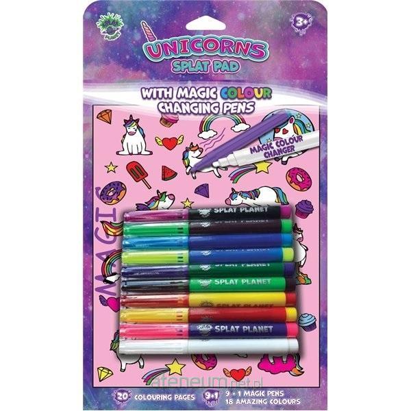 Każdy mazak w tym zestawie zmienia kolor podczas rysowania. Wystarczy kilka ruchów, aby zobaczyć, jak kolory się przekształcają tworząc wielobarwne dzieła. To doskonały sposób na rozwijanie kreatywności, wyobraźni oraz umiejętności manualnych u najmłodszych. Każda książka zawiera 20 stron z różnymi motywami przewodnimi oraz 10 mazaków zmieniających kolor.
