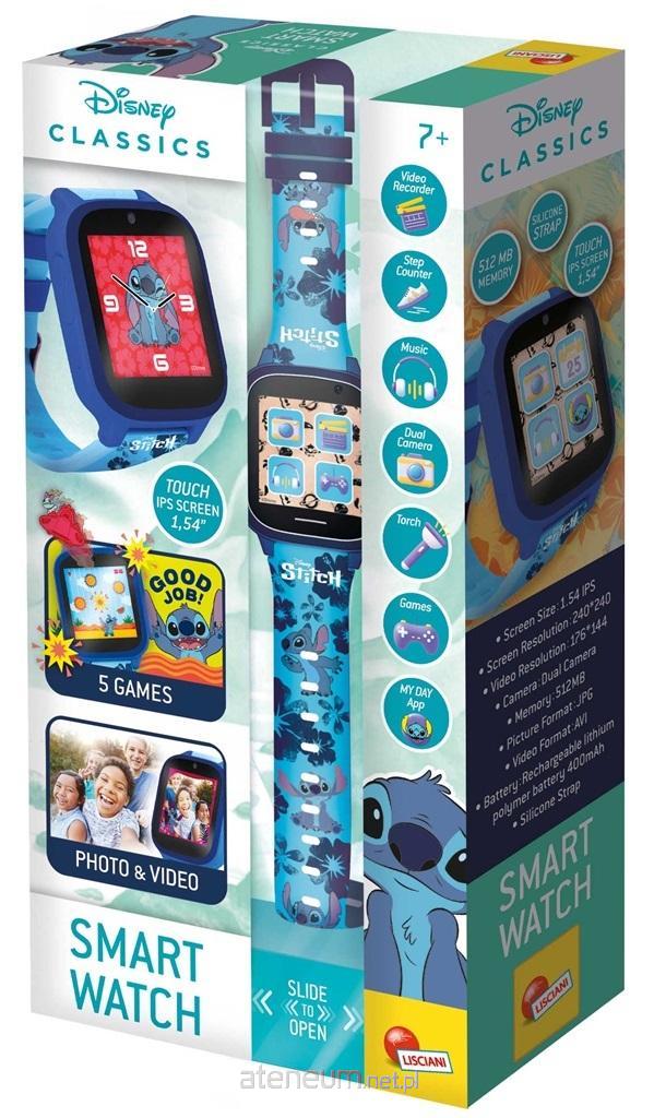 Uroczy smartwatch dla najmłodszych, dzięki któremu mogą poczuć się jak rodzice! Zegarek zawiera wiele różnych tarcz ze Stitchem, które umożliwiają jego personalizację, a także 5 edukacyjnych gier, które pozwolą ciekawie spędzić czas w każdym miejscu.