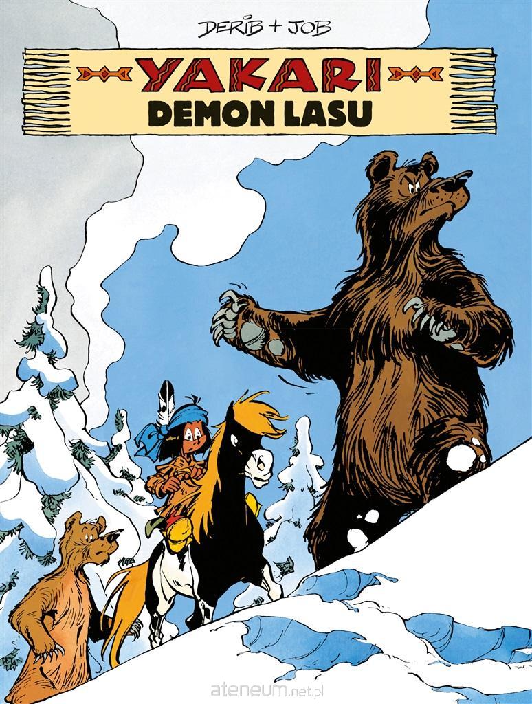 Dwudziesty tom przygodowej opowieści dla dzieci o znającym język zwierząt małym Indianinie Yakarim i jego dzielnym koniku Małym Piorunie. W środku zimy Siuksom kończą się zapasy jedzenia, a w dodatku ktoś kradnie im mięso upolowanego jelenia. Myśliwi wyruszają na poszukiwanie złodzieja, ale ten okazuje się od nich sprytniejszy. Czy to niedźwiedź? Yakari i Mały Piorun postanawiają samodzielnie poznać prawdę o tajemniczym przeciwniku. Czeka ich niebezpieczna przygoda, na szczęście mają w lesie wiernych przyjaciół, którym też nie podoba się obecność groźnego obcego stwora! Cykl stworzyli pod koniec lat 60. dwaj Szwajcarzy - scenarzysta Job (Andr Jobin) oraz rysownik Derib (Claude de Ribaupierre). Za tomy 6. i 31. "Yakariego" (odpowiednio w latach 1982 i 2006) dostali nagrody Festiwalu Komiksowego w Angoulme w różnych kategoriach komiksu dziecięcego. Do dziś ukazało się ponad czterdzieści albumów serii, która wciąż bawi młodszych i starszych czytelników.