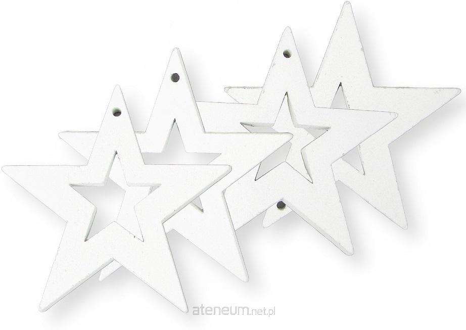zestaw 4 zawieszek choinkowych, gwiazdki, drewniane