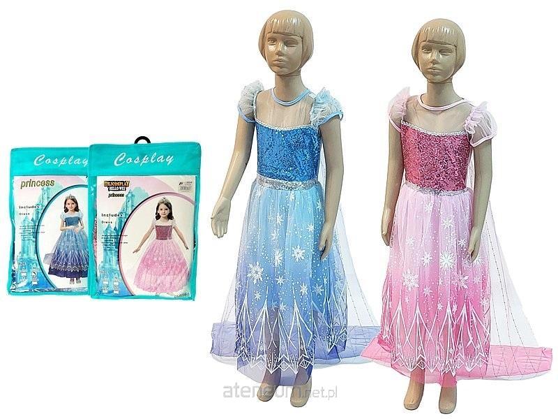 Strój karnawałowy, suknia królewny, doczepiany tren, 2 kolory - różowy i niebieski