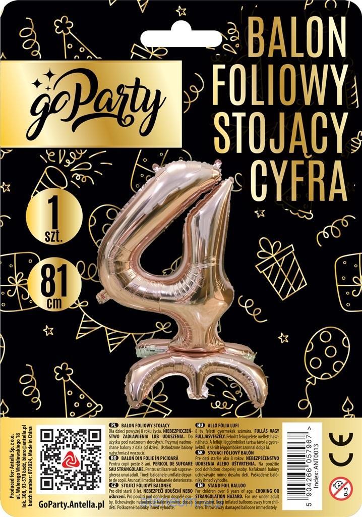Balon foliowy cyfra 4 niebieska 51x66cm