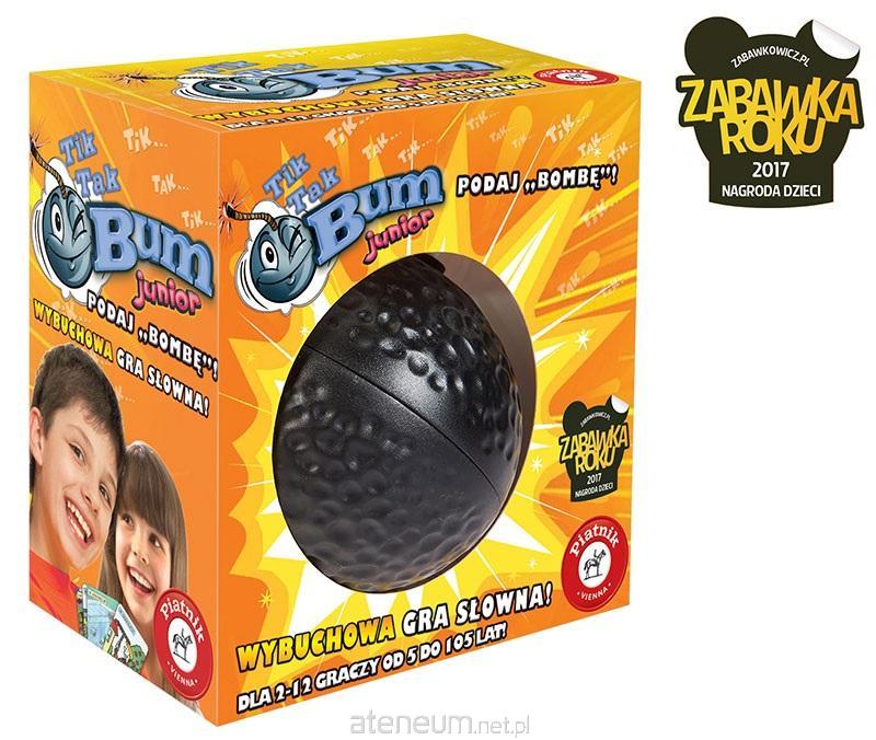 Świetna zabawa dla każdego dziecka Lubicie zabawę w skojarzenia? A lubicie, jeśli czujecie przy tym trochę stresu związanego z upływającym czasem? Jeśli tak, to z pewnością polubicie i Tik Tak Bum Junior Gra Podróżna. Kultowa gra Piatnika teraz również w wersji kompaktowej, dzięki czemu można ją zabrać na wakacje, w podróż czy na piknik do parku! W grze może uczestniczyć nawet 12 graczy, dzięki czemu możemy się bawić w gronie rodzinnym, na dziecięcej imprezie czy nawet w szkole. Dodatkowo jest możliwość gry w grupach co daje nam możliwości kooperacyjne. Celem gry jest kolejne wymyślanie przez graczy rzeczy pasujących do tego, co przedstawia wylosowana karta. Po wymyśleniu przekazują kolejnemu graczowi tykającą bombę. Są różne warianty gry, które można dopasowywać do liczby, wieku i stopnia rozegrania uczestników. Gra jest bardzo prosta i łatwa do zrozumienia nawet dla najmłodszych. Nie musimy przedzierać się przez zawiłości zasad i instrukcji, możemy w zasadzie w kilka sekund przystąpić do rywalizacji. Elektroniczna bomba zaraz wybuchnie! Tik Tak Bum Junior Gra Podróżna składa się ze 50 dwustronnych kart z hasłami i obrazkami przedstawiającymi różne miejsca i sytuacje oraz wybuchającej bomby! Uruchomiona bomba może "wybuchnąć" w losowym momencie - może tykać minutę, 30 sekund lub tylko 10! Bomba potrzebuje dwie baterie AAA 1,5 V (nie są załączone), by po wciśnięciu "zapalnika" zaczęła tykać. Szybka gra słowna dla dzieci Jeden z graczy bierze do ręki bombę i uruchamia mechanizm - bombka zaczyna tykać. Następnie odkrywa pierwszą kartę ze stosu. W tym momencie musi podać słowo pasujące do wyłożonej karty. Oczywiście wyrazy nie mogą się powtarzać. Po poprawnym skojarzeniu przekazuje bombę kolejnemu graczowi, który musi zrobić dokładnie to samo. Bomba nie będzie tykała w nieskończoność - może to trwać 10, 20, 30 sekund lub nawet minutę! Musimy być przygotowani na to, że może wybuchnąć w każdej chwili, dlatego w zabawie liczy się spostrzegawczość oraz dobry refleks. Pechowy gracz, w którego rękach nastąpiła eksplozja, musi zabrać odkrytą w tej kolejce kartę. Ten gracz odkrywa kolejną kartę i znowu bombka zaczyna sobie krążyć czyhając na swoją ofiarę. Gra kończy się w momencie, w którym dany gracz uzbiera pięć kart. Wygrywa ta osoba, która tych kart uzbiera najmniej. Cała rozgrywka trwa około 30 minut. Tik Tak Bum Junior Gra Podróżna pomoże rozwinąć język angielski i nie tylko! Ponieważ karty zawierają słowa po polsku i angielsku, Tik Tak Bum Junior idealnie nadaje się do ćwiczeń językowych oraz wzbogacania słownictwa z wielu obszarów tematycznych w języku polskim oraz angielskim. W każdym przypadku poszerza się słownictwo, ćwiczy się szybkość formułowania wypowiedzi, dzieci przełamują strach przed wypowiedzią, walczą z presją czasu i dobrze się bawią. Mimo prostych zasad gra może mieć również zastosowanie na zajęciach z języków obcych w grupach w dowolnym przedziale wiekowym.
