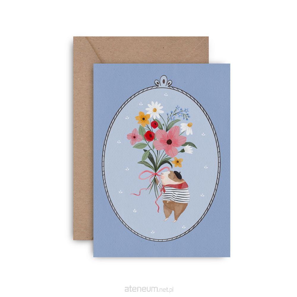 Ręcznie malowany akwarelą wzór autorstwa Agnieszki Kumańskiej przedstawia uroczą świnkę morską w eleganckim, francuskim stroju, z ogromnym bukietem kwiatów w łapkach. Subtelne detale jak beret, pasiasta koszulka i serdeczny wyraz twarzy emanują ciepłem i radością, idealnie wyrażając wdzięczność i życzliwość.
