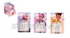 gramatura: 80 g liczba stron: 192 okładka: twarda materiał: skóra ekologiczna wymiary: 90140 mm pionowa gumka zamykająca gumka na długopis zaokrąglone rogi wyklejka z czarnego papieru ozdobnego wnętrze: kratka koperta na luźne karteczki wstążka w kolorze okładki
