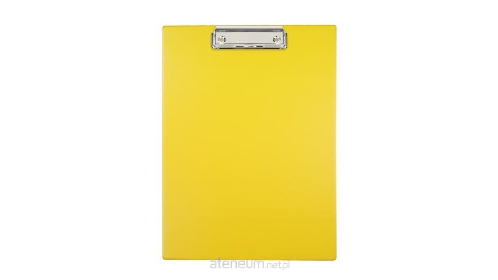 Wykonany z kolorowej folii PVC. Środek usztywniony tekturą. Wyposażony w sprężysty mechanizm zaciskowy służący do przytrzymywania kartek. Podkładka pojedyncza. Format A4.