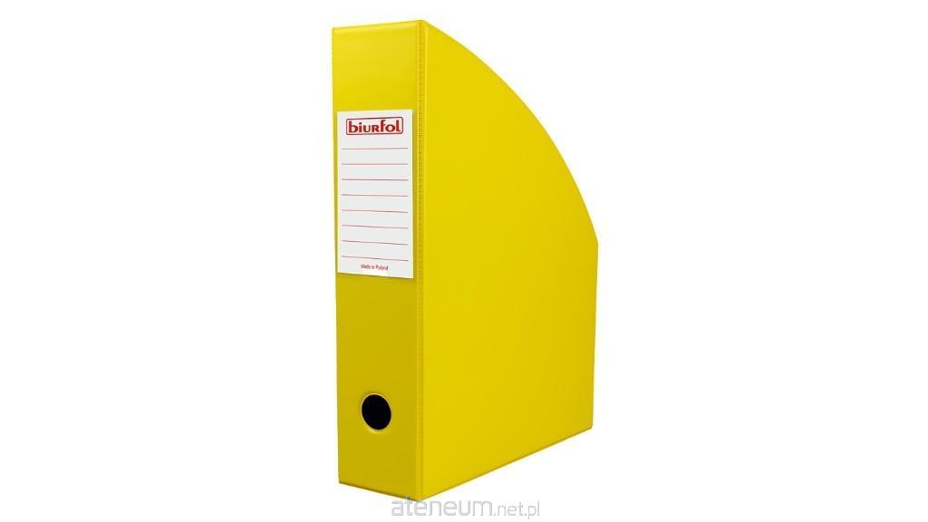 Wykonany z kolorowej folii PVC, wewnątrz usztywniony tekturą. Format A4 o ściętych bokach. Wyposażony w kieszonkę z wymienną etykietą opisową na grzbiecie. Okrągłe wycięcie na palec pozwalające na łatwe wysuwanie pojemnika. Szerokość grzbietu 7 cm.