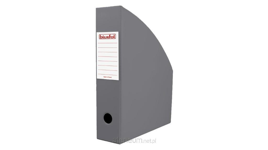 Wykonany z kolorowej folii PVC, wewnątrz usztywniony tekturą. Format A4 o ściętych bokach. Wyposażony w kieszonkę z wymienną etykietą opisową na grzbiecie. Okrągłe wycięcie na palec pozwalające na łatwe wysuwanie pojemnika. Szerokość grzbietu 7 cm.