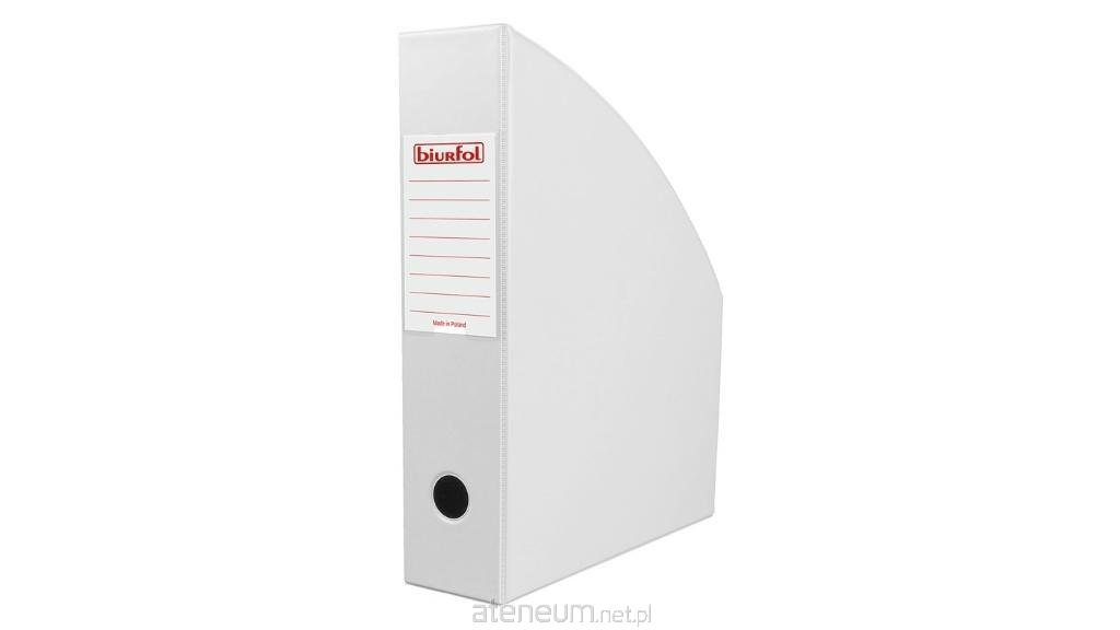Wykonany z kolorowej folii PVC, wewnątrz usztywniony tekturą. Format A4 o ściętych bokach. Wyposażony w kieszonkę z wymienną etykietą opisową na grzbiecie. Okrągłe wycięcie na palec pozwalające na łatwe wysuwanie pojemnika. Szerokość grzbietu 7 cm.