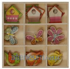 Drewniane dekoracje w pudełku mix wzorów 27szt
