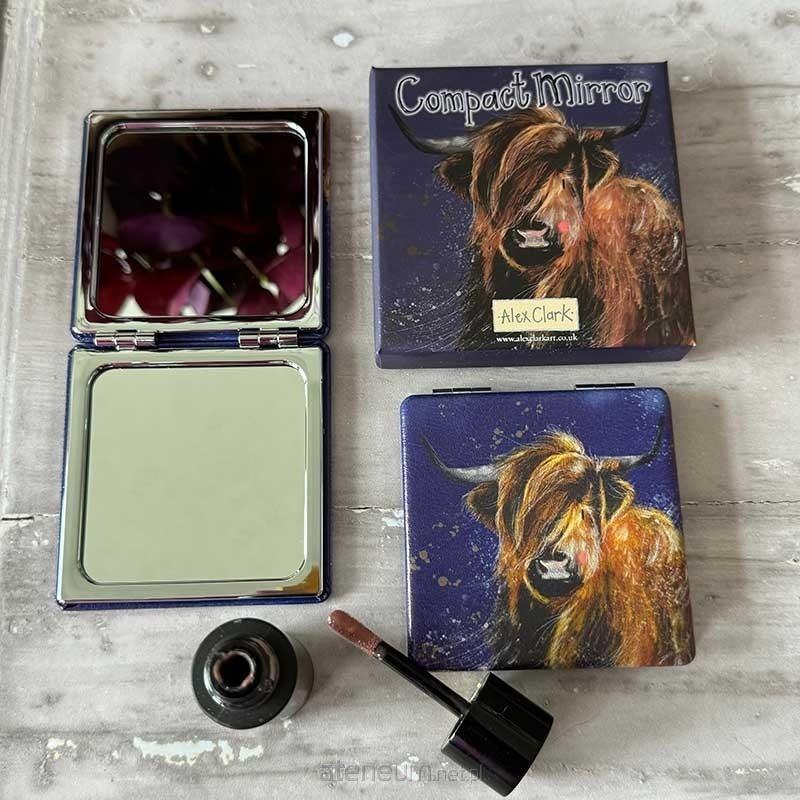 To śliczne kompaktowe lusterko jest na tyle poręczne, że zmieści się nawet w małej torebce bądź kieszeni. Zawiera dwie idealne do poprawek strony, w tym jedną powiększającą, która umożliwia precyzyjną aplikację. Zapakowane w ilustrowane pudełko prezentowe. Zapinane na zawiasy i ukryty magnes. Wykonane ze skóry wegańskiej, metalu i szkła. Rozmiar: 70 mm x 70 mm.
