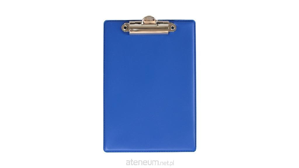 Wykonany z kolorowej folii PVC. Środek usztywniony tekturą. Wyposażony w sprężysty mechanizm zaciskowy służący do przytrzymywania kartek. Podkładka pojedyncza. Format A6. Dostępny w trzech kolorach: niebieski, granat, czarny.