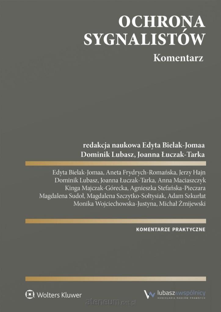 Komentarz zawiera szczegółowe omówienie przepisów ustawy z 14.06.2024 r. o ochronie sygnalistów, implementującej do polskiego porządku prawnego dyrektywę Parlamentu Europejskiego i Rady (UE) 2019/1937 z 23.10.2019 r. w sprawie ochrony osób zgłaszających naruszenia prawa Unii. Stanowi on kompendium wiedzy, będące efektem wspólnych działań podjętych przez ekspertów - praktyków i przedstawicieli nauki. Szczególną uwagę autorzy poświęcili takim zagadnieniom jak: wewnętrzna i zewnętrzna procedura naruszeń, ochrona sygnalistów, osób pomagających w dokonaniu zgłoszenia oraz osób powiązanych z sygnalistą przed działaniami odwetowymi, ochrona tożsamości sygnalistów i osób, których zgłoszenie dotyczy. Książka przeznaczona jest dla prawników praktyków - adwokatów, radców prawnych i sędziów, a także aplikantów i absolwentów studiów na kierunku prawo. Będzie cennym źródłem wiedzy dla pracowników działów HR, osób odpowiedzialnych w organizacji za obszar compliance, jak też - z uwagi na zawarte w komentowanej ustawie odniesienie do przepisów o ochronie danych osobowych - inspektorów ochrony danych oraz innych osób zaangażowanych w ochronę danych osobowych w organizacji. Będzie również przydatna wszystkim osobom dokonującym zgłoszeń naruszenia prawa, które działają w dobrej wierze.