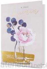 Kwadratowy karnet okolicznościowy w zestawie z kopertą. Złocony i tłoczony.