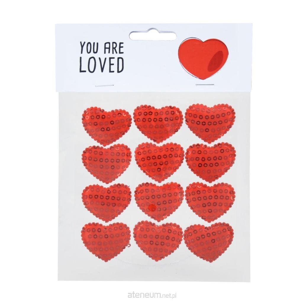 Materiałowe czerwone serduszka z cekinami o wymiarze: 3x3.5cm.12 sztuk na blistrze.