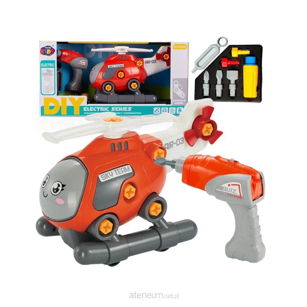 Kolorowy helikopter z ruchomymi śmigłami to świetna zabawka dla dziecka, które uwielbia majsterkować - zabawka zajmie Twoją pociechę na wiele godzin. Do zabawki dołączono zestaw narzędzi - wkrętarkę, śrubokręt oraz wymienne końcówki stanowiące nieodłączny element tej zabawki, pozwalając dzieciom na samodzielne rozkręcanie i skręcanie pojazdu. Zabawka rozwijająca koordynację ruchową i wzrokową dziecka jest świetną formą spędzania czasu dla dziecka. Samolot do samodzielnego skręcania to zabawka, która doskonale pobudzi kreatywność u dzieci. Model pojazdu wzorowany na prawdziwym helikopterze z mnóstwem elementów do samodzielnego skręcania i rozkręcania zachwyci każdego malucha! Ciekawe wykonanie, uśmiechnięta buźka - na pewno zadowolą każde dziecko.