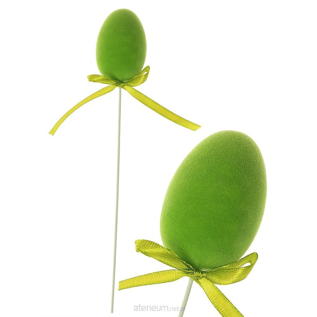 Pisanka flokowana, jak z mchu, to oryginalna i naturalna dekoracja wielkanocna. Zielone jajko zdobione kokardką umieszczone jest na piku o długości 25 cm, co umożliwia łatwe wkomponowanie go w stroiki czy aranżacje w wazonie. Produkt jest lekki i wygodny w użyciu.