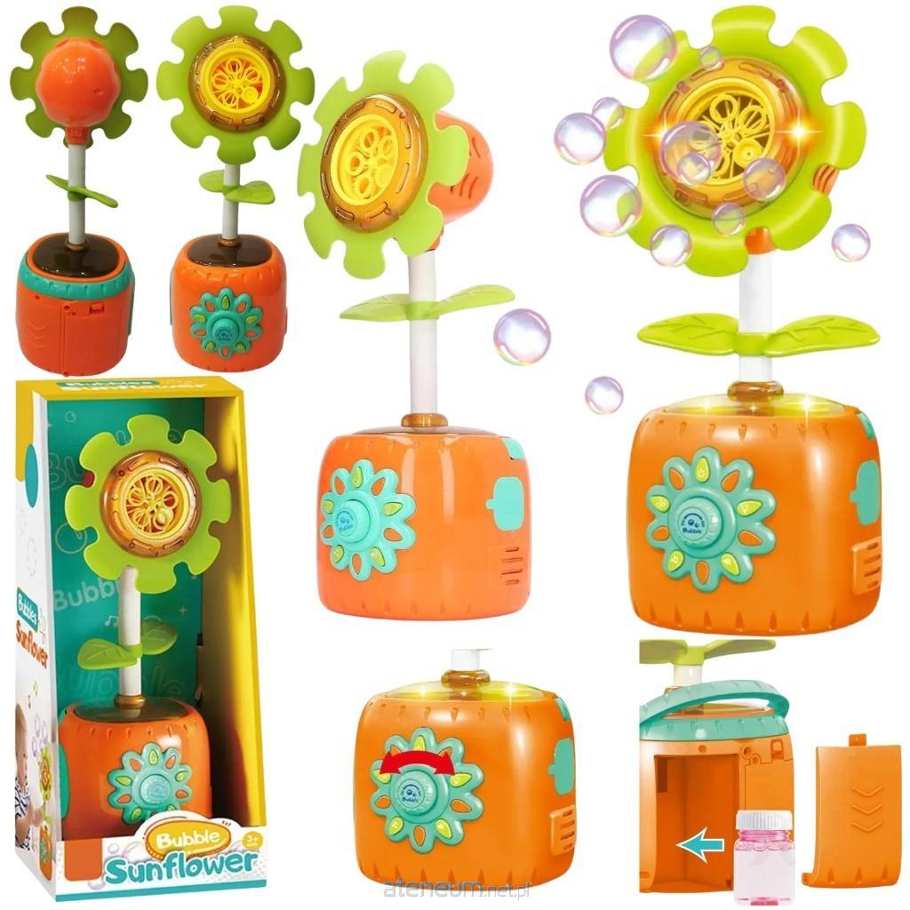 Melodie wydobywające się ze słonecznika są dodatkową atrakcją i umilają dziecięcą zabawę. Poruszający się kwiat ukierunkuje ruch baniek, a bańki szybko się rozprzestrzenią wokół.